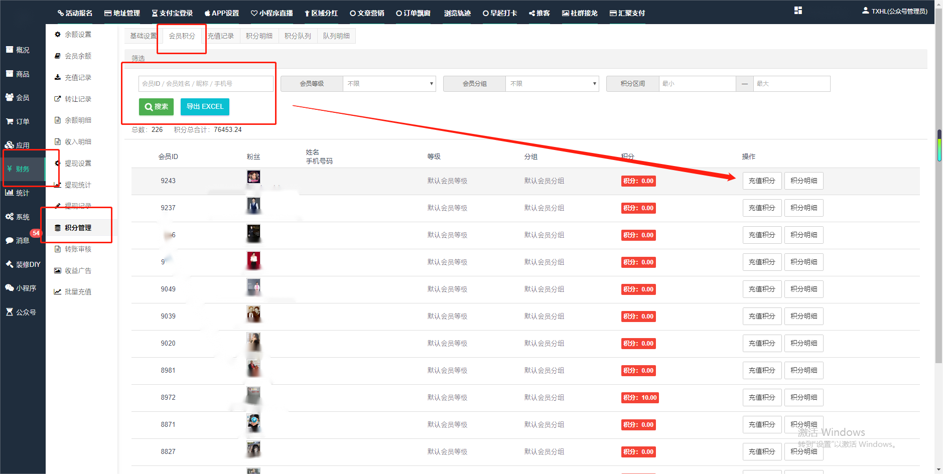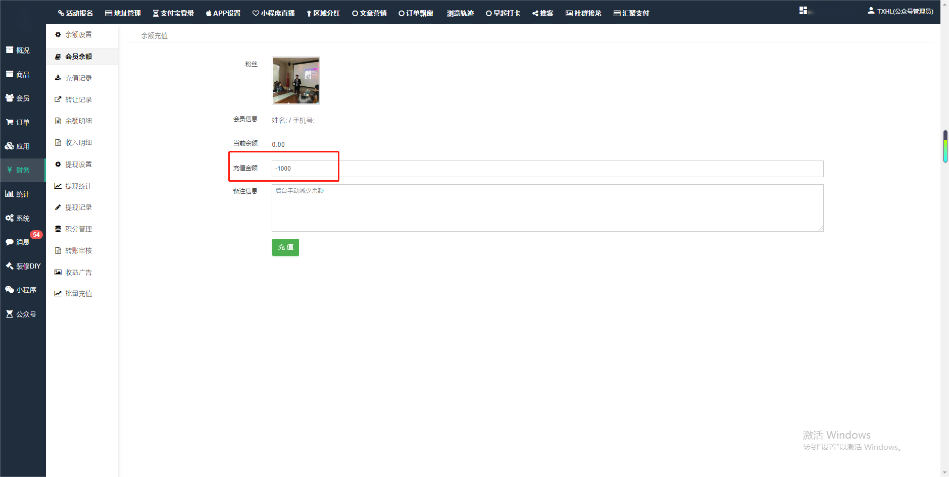目录 搜索 展开 一、前期准备资料二、数字乡村码-上线操作指南1、服务号的申请流程及认证2、申请小程序流程3、开放平台绑定小程序和公众号三、数字乡村码-系统操作数字乡村码系统管理-概况数字乡村码-商品管理1、发布商品2、商品列表3、商品表单4、商品分类5、品牌管理6、配送模板7、评论管理8、优惠券管理9、商品标签10、退货地址设置11、满额优惠12、批量操作13、配送方式14、基础设置15、商品隐藏四、数字乡村码-会员管理1、全部会员2、会员等级3、会员分组4、资格申请5、会员设置6、推广中心设置7、会员邀请码8、会员关系链修改关系链修改记录9、会员合并记录10、账号注销管理11、会员设置中心五、数字乡村码-订单管理1、订单管理列表2、订单处理流程3、订单状态4、订单修改价格5、订单退款退货6、多包裹发货7、批量发货订单操作步骤8、催发货订单9、物流查询六、数字乡村码-财务管理1、余额设置2、会员余额3、充值记录4、转让记录5、余额明细6、收入明细7、提现设置8、提现统计9、积分管理10、转账审核11、收益广告12、批量充值七、数字乡村码-系统管理1、商城入口2、商城设置①、商城设置②、订单设置③、物流查询④、短信⑤、联系方式⑥、分类⑦、优惠券⑧、分享⑨、幻灯片⑩、广告位⑫、地图设置3、交易设置4、微信模板消息自定义消息模板(新版)自定义消息模板(旧版)小程序消息模板公众号模板消息变更公告5、语言设置6、权限管理7、多媒体管理八、数字乡村码-消息管理九、数字乡村码-应用管理十、数字乡村码系统-数据统计十一、数字乡村码-页面装修DIY1、模板管理2、店铺页面3、顶部导航4、底部导航5、DIY模板市场6、首屏广告7、基础设置8、装修DIY尺寸建议十二、供应商功能插件操作指南1、供应商2、门店-收银台门店申请和使用步骤门店管理①、门店-收银台 营销设置②、门店-收银台 分润设置门店分类门店申请门店审核门店商品门店商品订单收银台订单数据统计核销员基础设置默认设置门店装修3、微社区4、会务活动十三、营销插件操作指南活动报名提货卡新人奖微店问卷调查积分视频分享1、视频分享基础设置2、视频分享发现管理3、视频分享分类管理4、视频分享评论管理5、视频分享分红记录6、视频分享短视频中心每日红包幸运大抽奖签到优惠券二维码任务奖励优惠劵文章音频文章付费文章限时购新海报拓客卡操作流程积分活动素材中心视频红包十四、入驻门店应用类1、门店预约2、附近商品3、门店定位设置4、门店控制5、门店满额包邮6、门店满额减7、导入商品8、门店搜索9、门店股东10、核销券11、多门店核销1、商城后台设置2、前端功能演示十五、常见问题1、后台登录密码修改流程2、会员-余额,积分,后台如何进行充值与扣除3、如何修改上下级关系4、一种万能的获取商城小程序路径的方法 暂无相关搜索结果! 阅读次数:1560 本文档使用 模王系统 发布 2、会员-余额,积分,后台如何进行充值与扣除 会员-余额,积分,后台如何进行充值与扣除一.如何进行余额充值-扣除1.财务-会员余额-搜索会员昵称-右边点击充值余额2.扣除余额,只需要在充值金额前加上 - 号;比如充值-100,等于扣除100余额二,如何手动充值积分-扣除积分(充值与扣除逻辑跟余额是一样的)文档更新时间: 2024-01-05 14:28 作者:链上旅行
